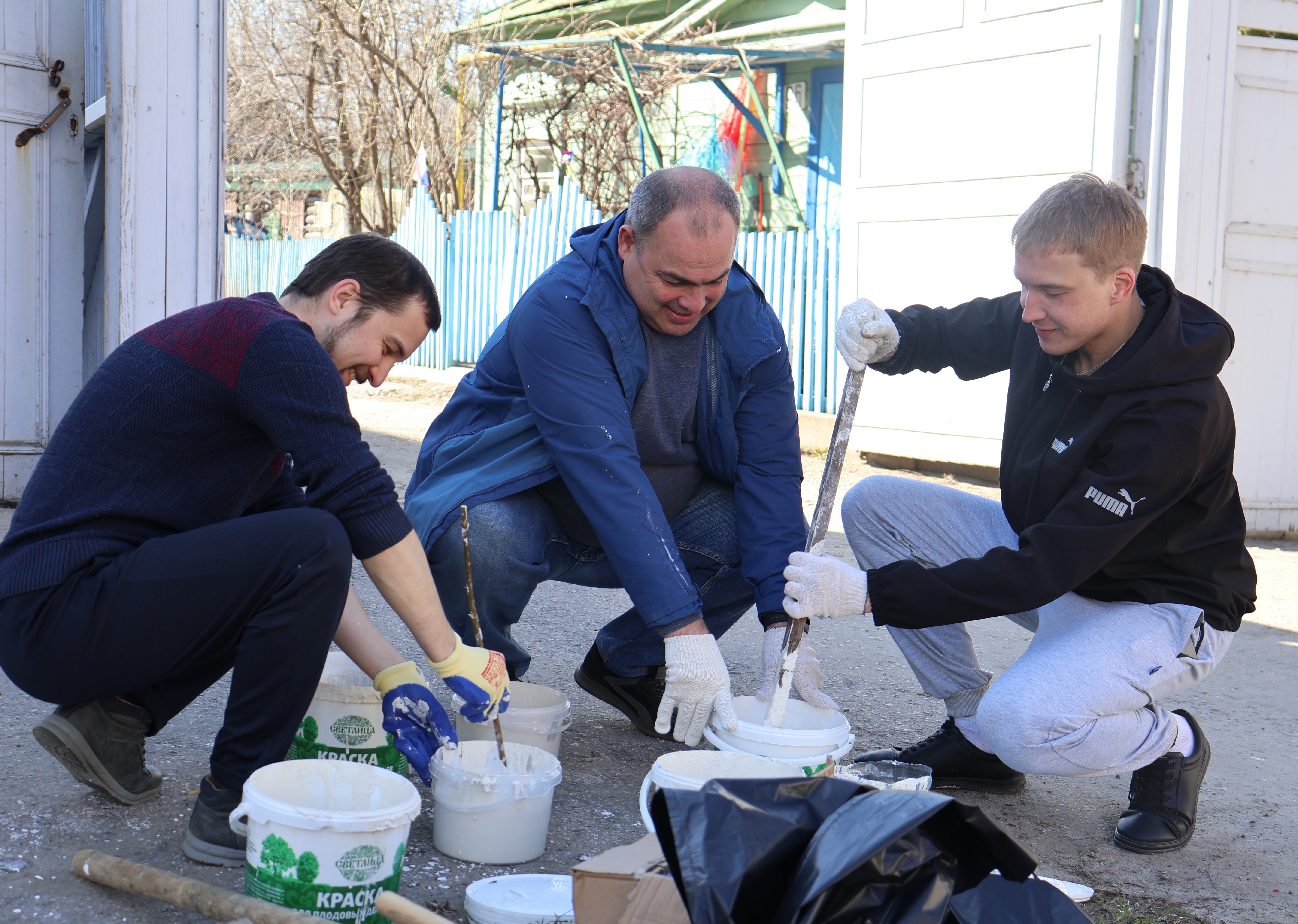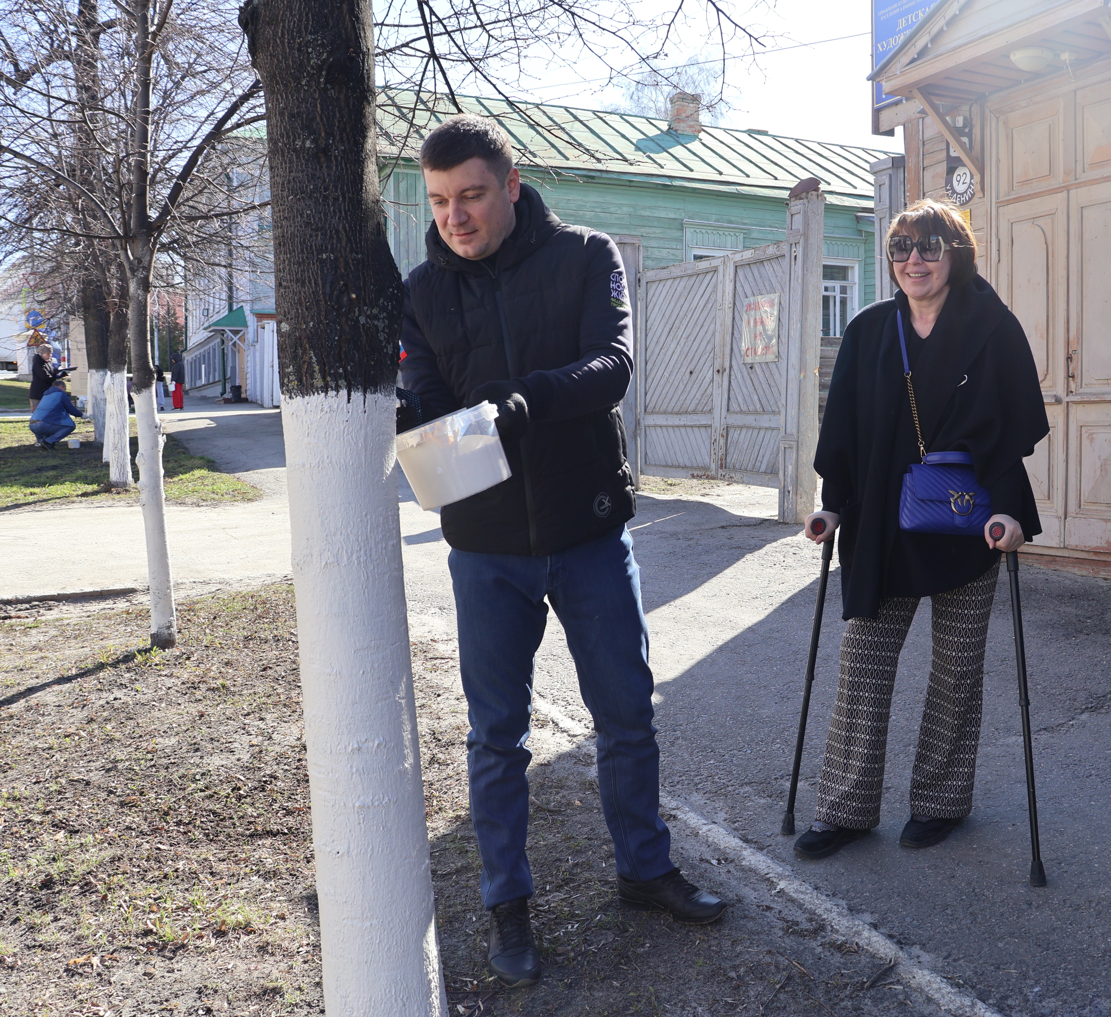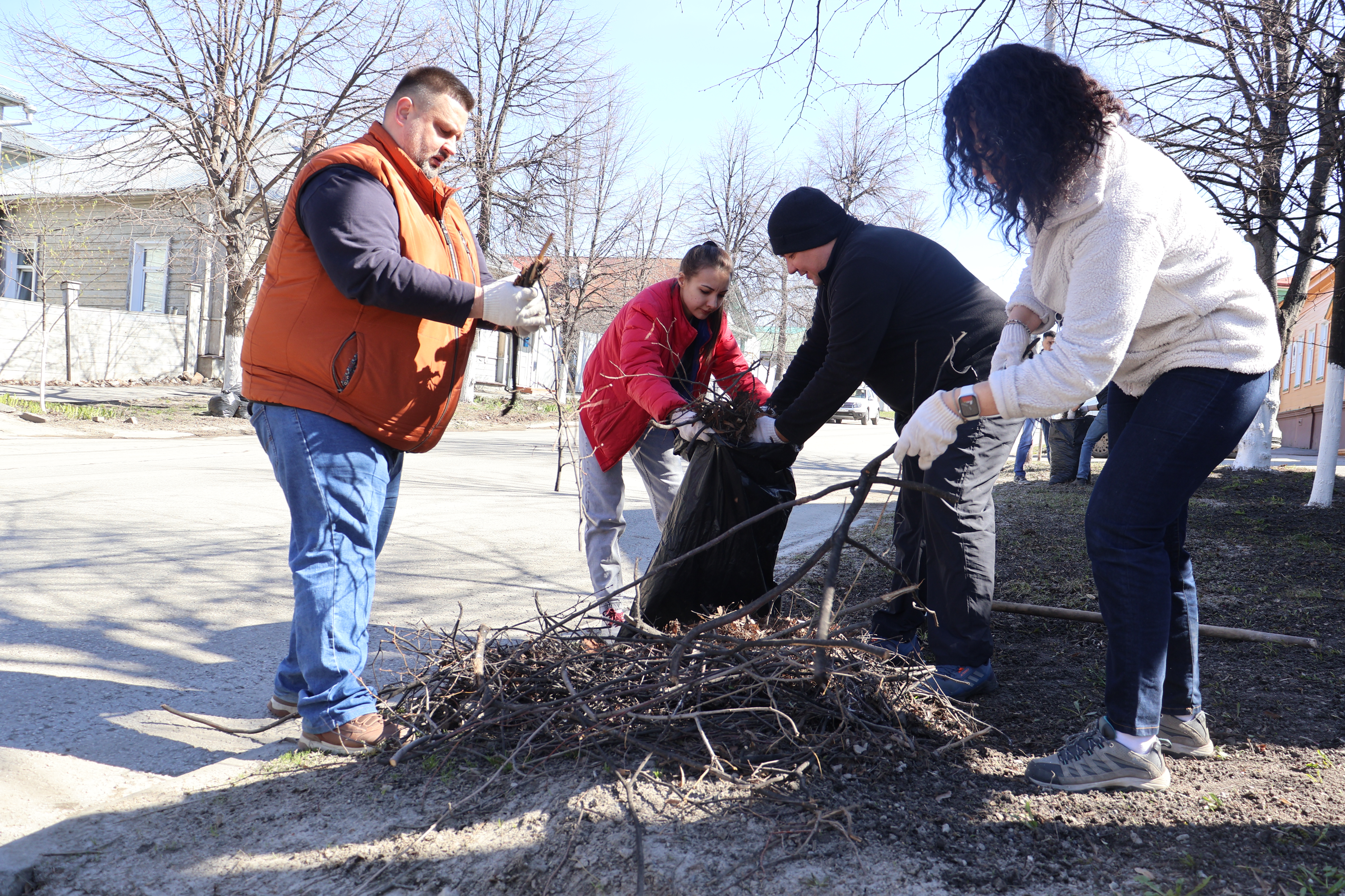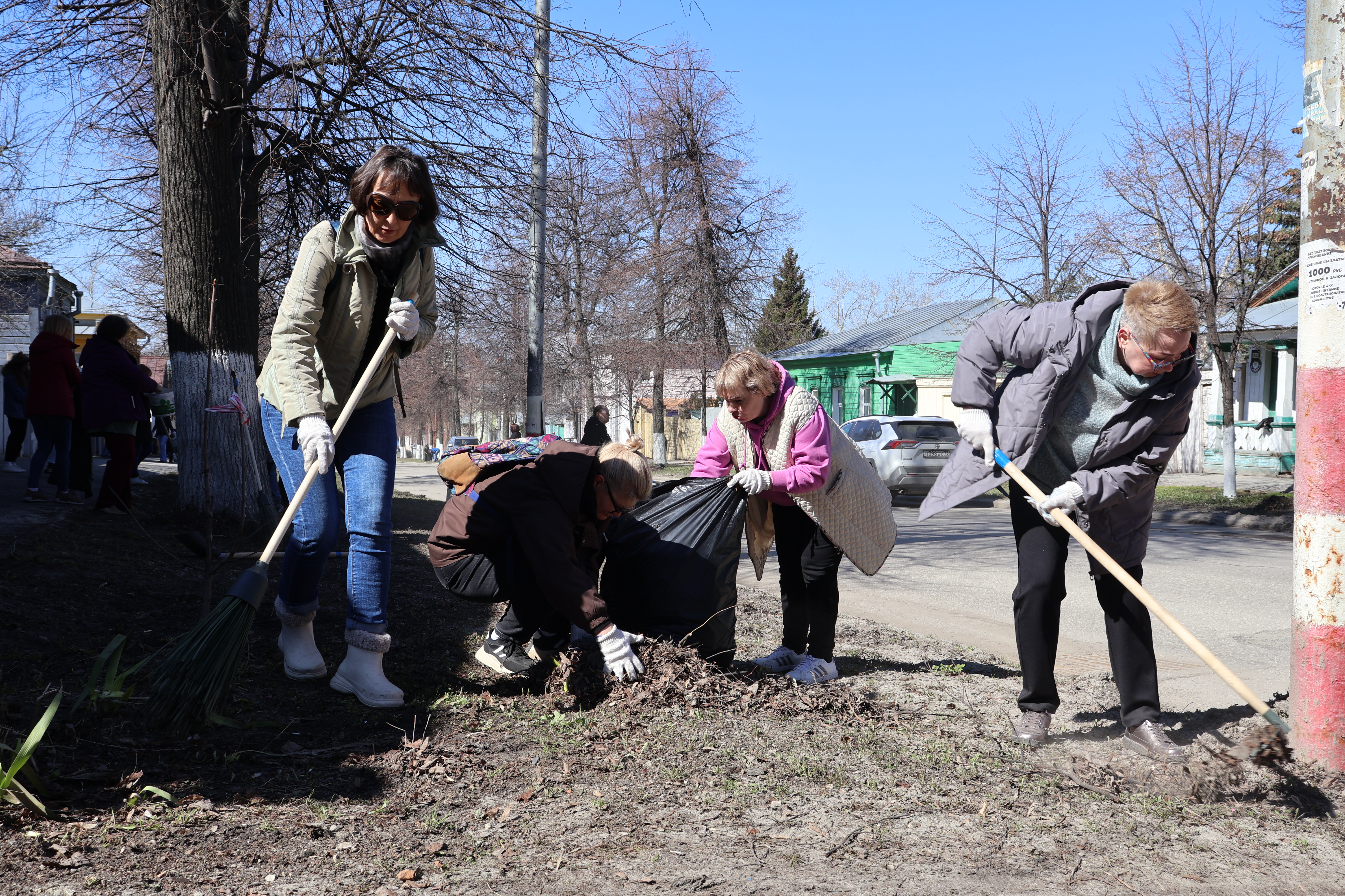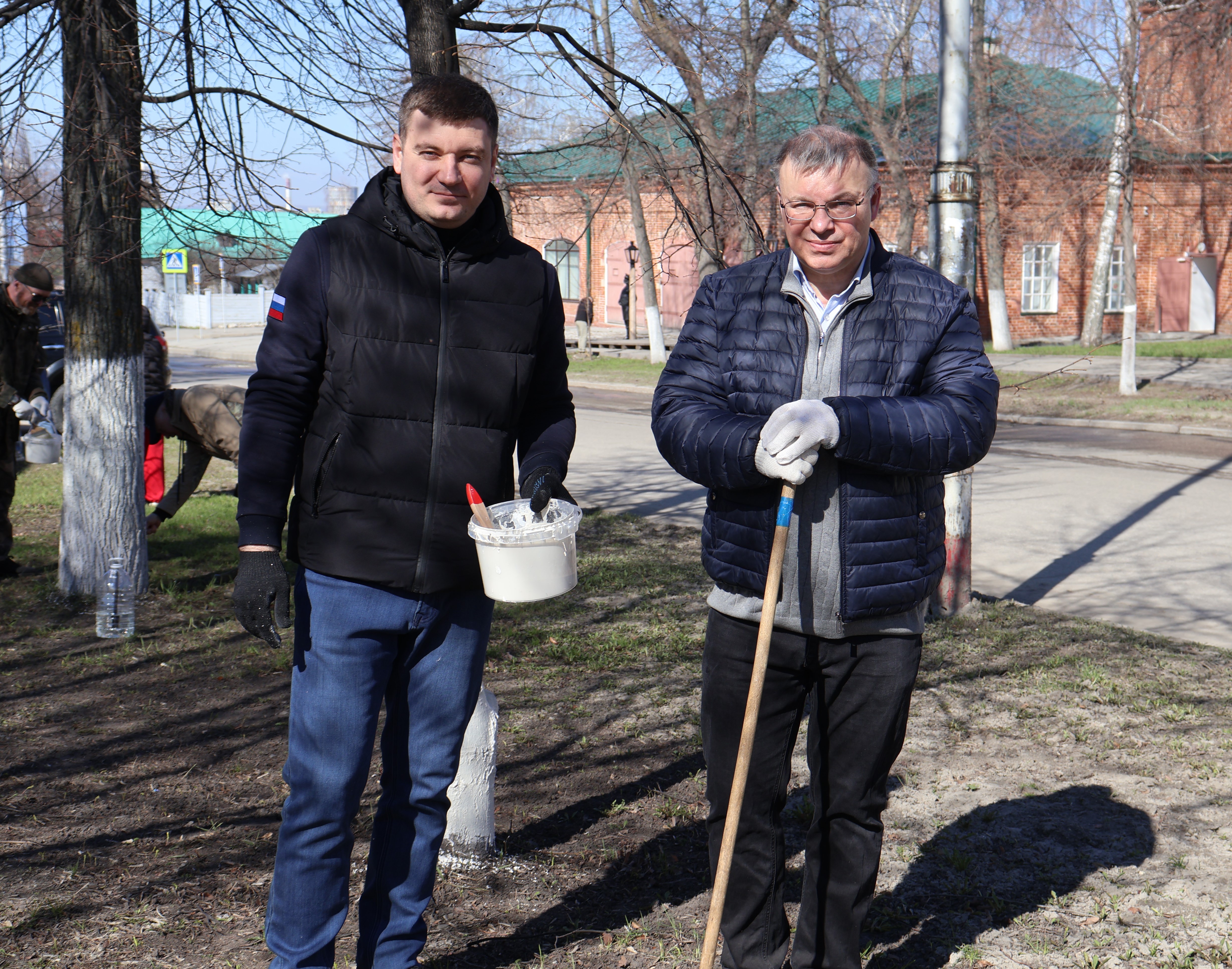 В ходе субботника участники совместными усилиями очистили территорию от мусора и сухих веток, подмели пешеходные дорожки и побелили стволы деревьев.